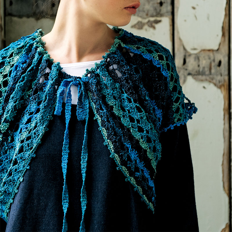 材料:ニッケビクター毛糸 ニッケペーパーリーフ ブルー系段染め(103)130g/5玉。