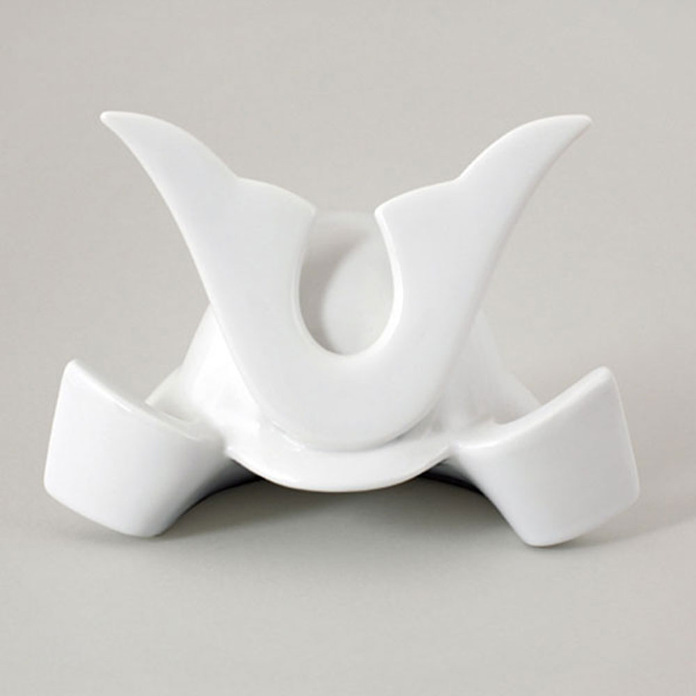 白い磁器素材の兜です。陶磁器製品ならではの立体的で高級感のあるフォルム。着色は磁器絵付け専用の絵の具が適しています。