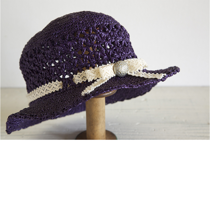 おさんぽタイムにかぶりたいレースを添えた女の子らしい帽子です。縁には鎖編みのフリルでニュアンスを。