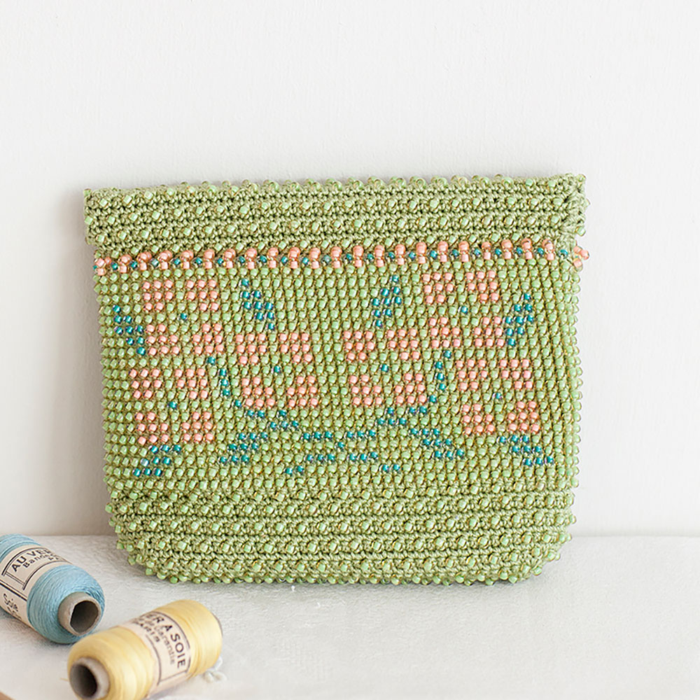 憧れのビーズ編みのポーチは、編みやすい太さの糸&ビーズでチャレンジしてみて。糸に通すビーズの量が多いので、パーツごとに編むのがポイント。