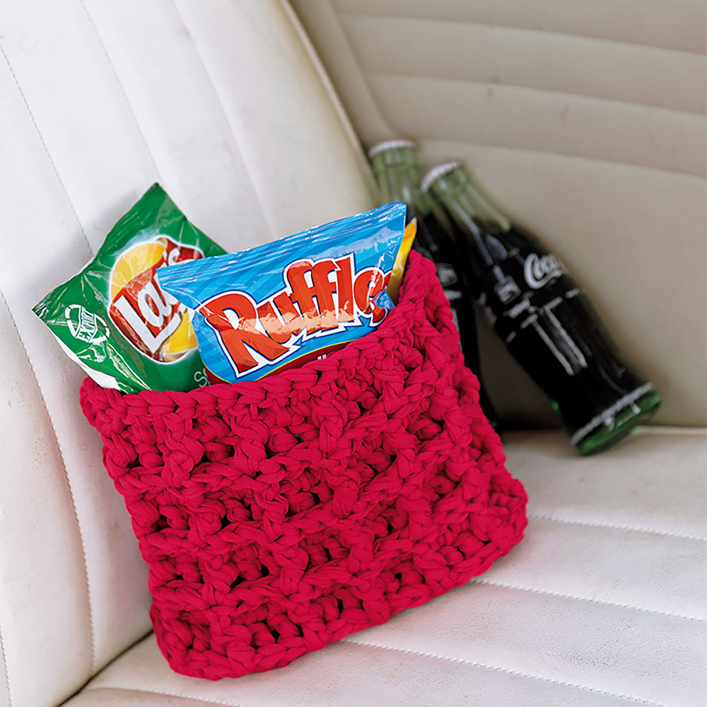 こまごましたものを整理したり、ダストボックスにしたり、いろいろな使い方ができる小物入れ。ワッフル・ステッチでしっかり仕上げて。