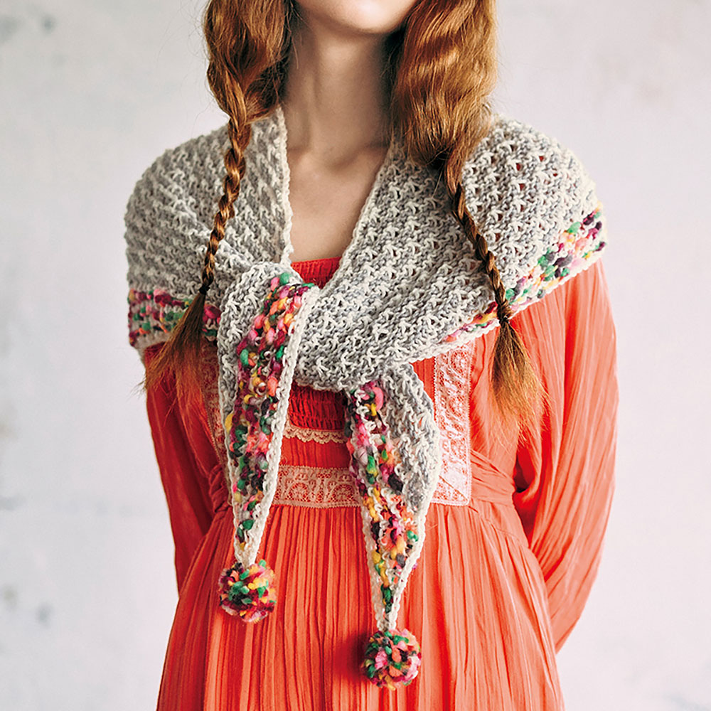 「ウミウシ」に合わせて太めの針で編んだショールは、ふんわり軽やかに仕上がりました。まだ少し肌寒い春のピクニックにもぜひ。