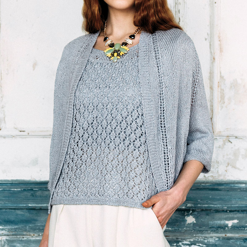 材料:ダイヤモンド毛糸 ダイヤコスタルナ ライトグレー(9203)240g/7玉。
