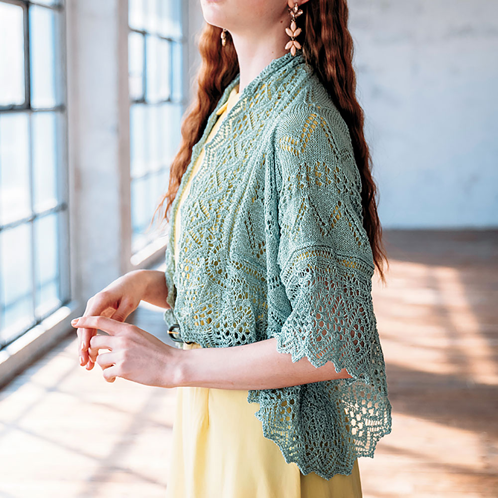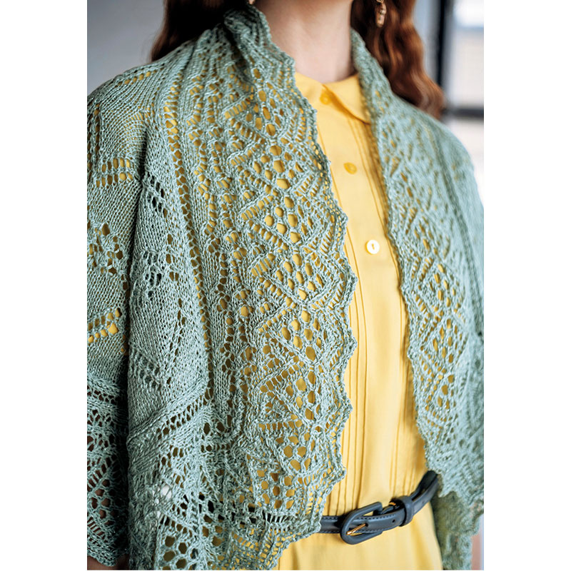 短めのショールに真っ直ぐな袖をつけたような形のジャケットは、憧れのシェットランドレース模様。お気に入りのものは、1日頑張れるパワーをくれる魔法のアイテム。時間をかけて編み上げた大作は、勿体がらずにどんどんお披露目してしまいましょう。