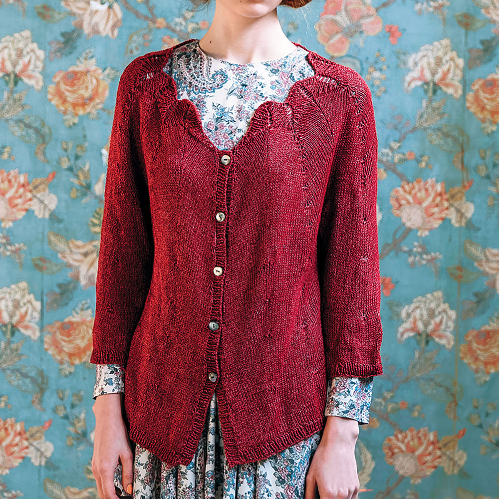 大きなスカラップの衿がロマンチックなカーディガン。テイストの違うお洋服や普段選ばない色でイメージチェンジしてみるのも、春らしいチャレンジです。新しい世界への扉はすぐそこに。