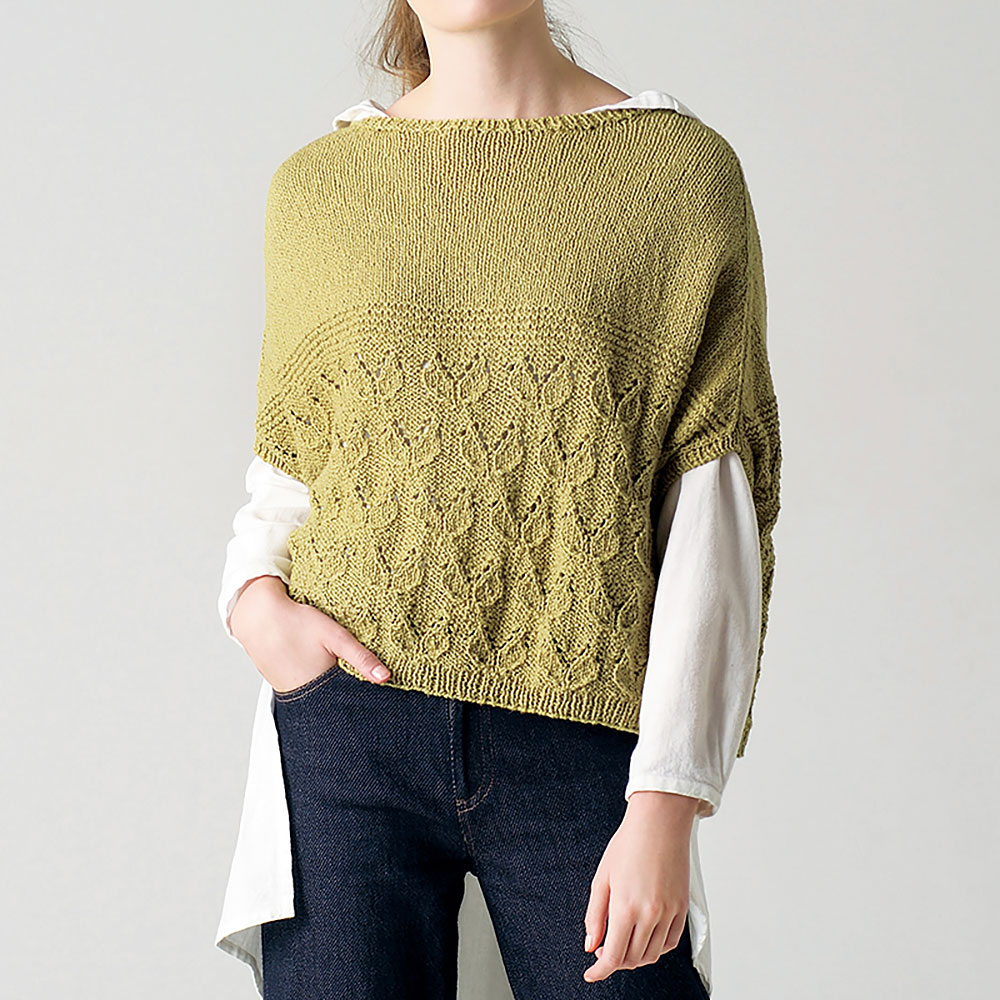 重ね着にも重宝する、ポンチョのようなプルオーバーです。少し暑い日でも、たっぷりの身頃は風が吹き抜けるので涼しく感じると思います。