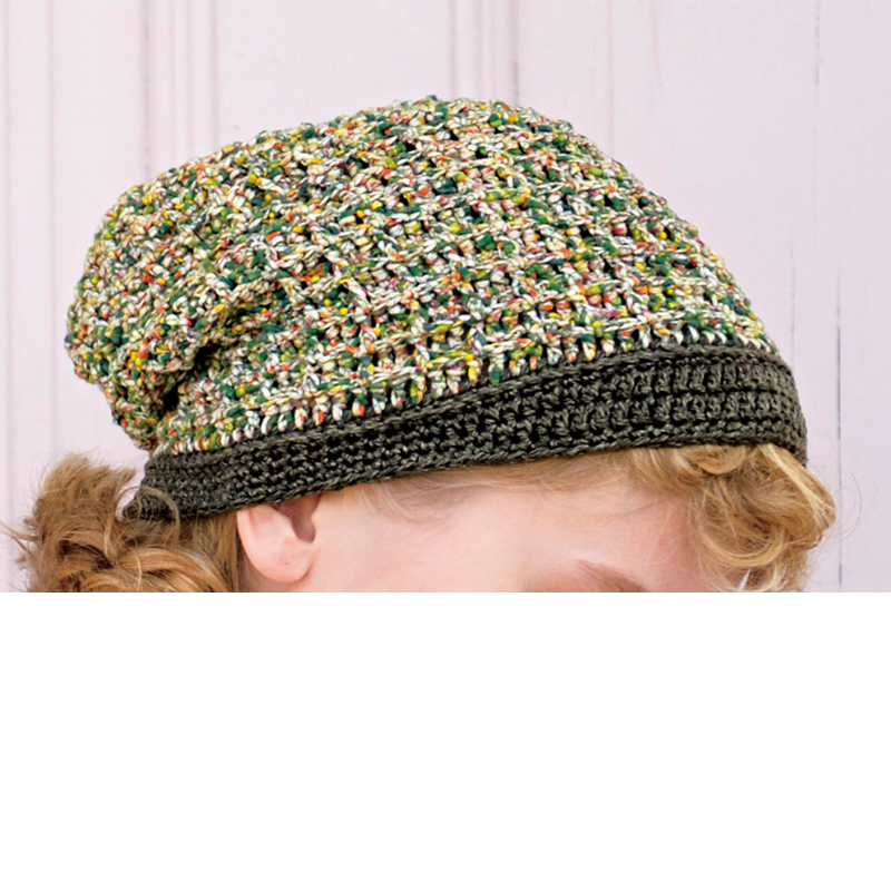 お菓子のワッフルみたいな模様編みはとっても簡単。長編みと長編みの引き上げ編みで格子のラインを作ります。しっかりと厚みの出る編み方です。おそろいでバッグもあります。