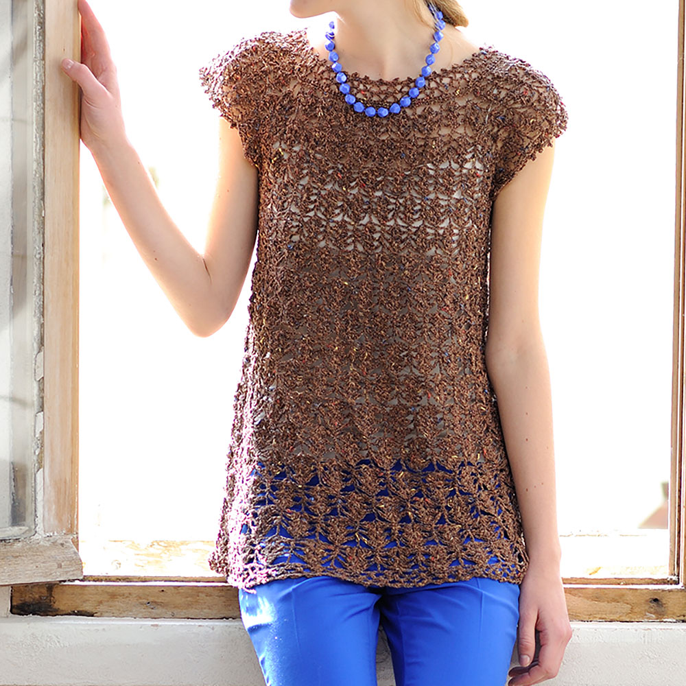 Aラインのチュニックは、ボディラインをスリムに見せてくれるシルエット。 ブラウンにラメの輝きがエレガントです。