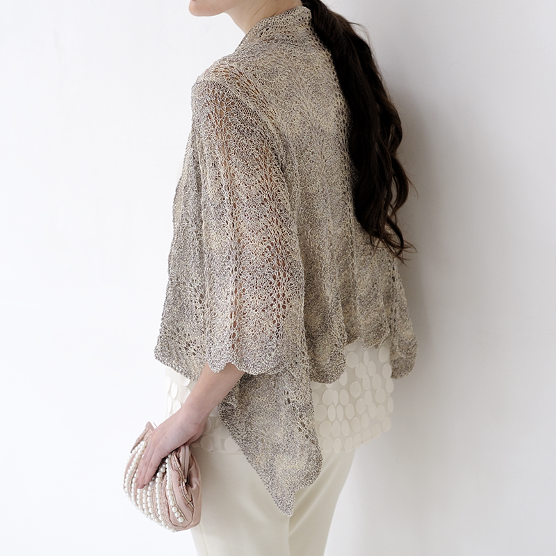 透かし模様の羽織るカーディガンは、身頃も袖もやさしく編める直線デザインが新鮮です。