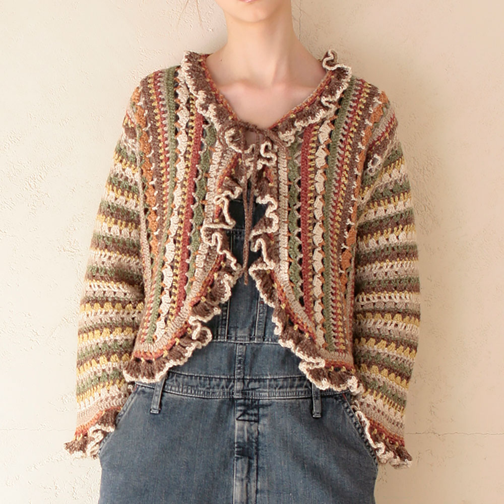 多色使いが新鮮な印象のボレロです。フリルで仕上げることで、女の子っぽさがプラスされています。