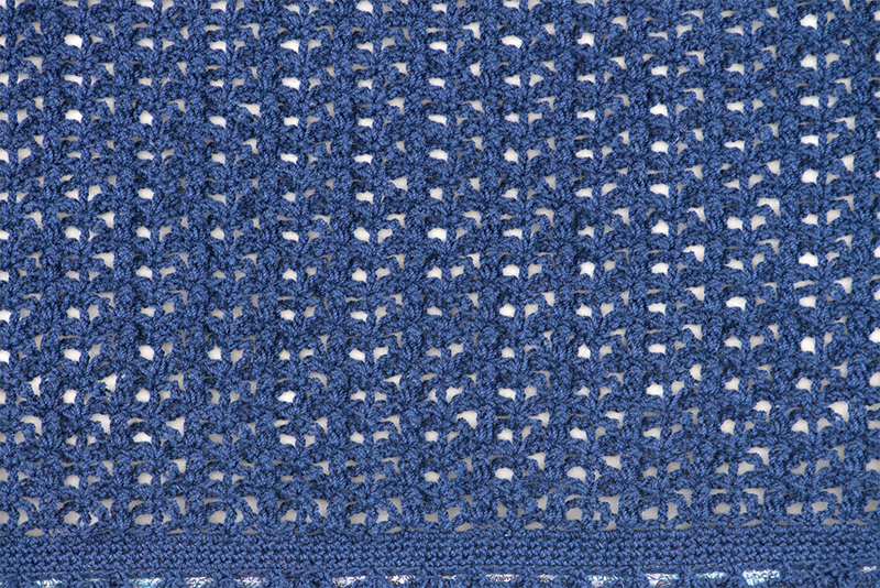 ニット×ソーイングの上品なチュニック丈ブラウス。ニット部分はレース針で模様編みし、両脇を縫ってギャザーを寄せたスカート部分にかぶせ、ミシンか手で縫い合わせます。ニット中級以上の方へ。