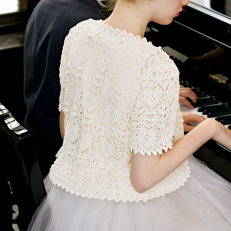 シンプルなドレスに羽織りたい、凝った模様のボレロ。美しく繊細な模様の共演が、ハレの日にとっておきの華を添えてくれます。色を替えればゲスト用のボレロにもぴったりです。