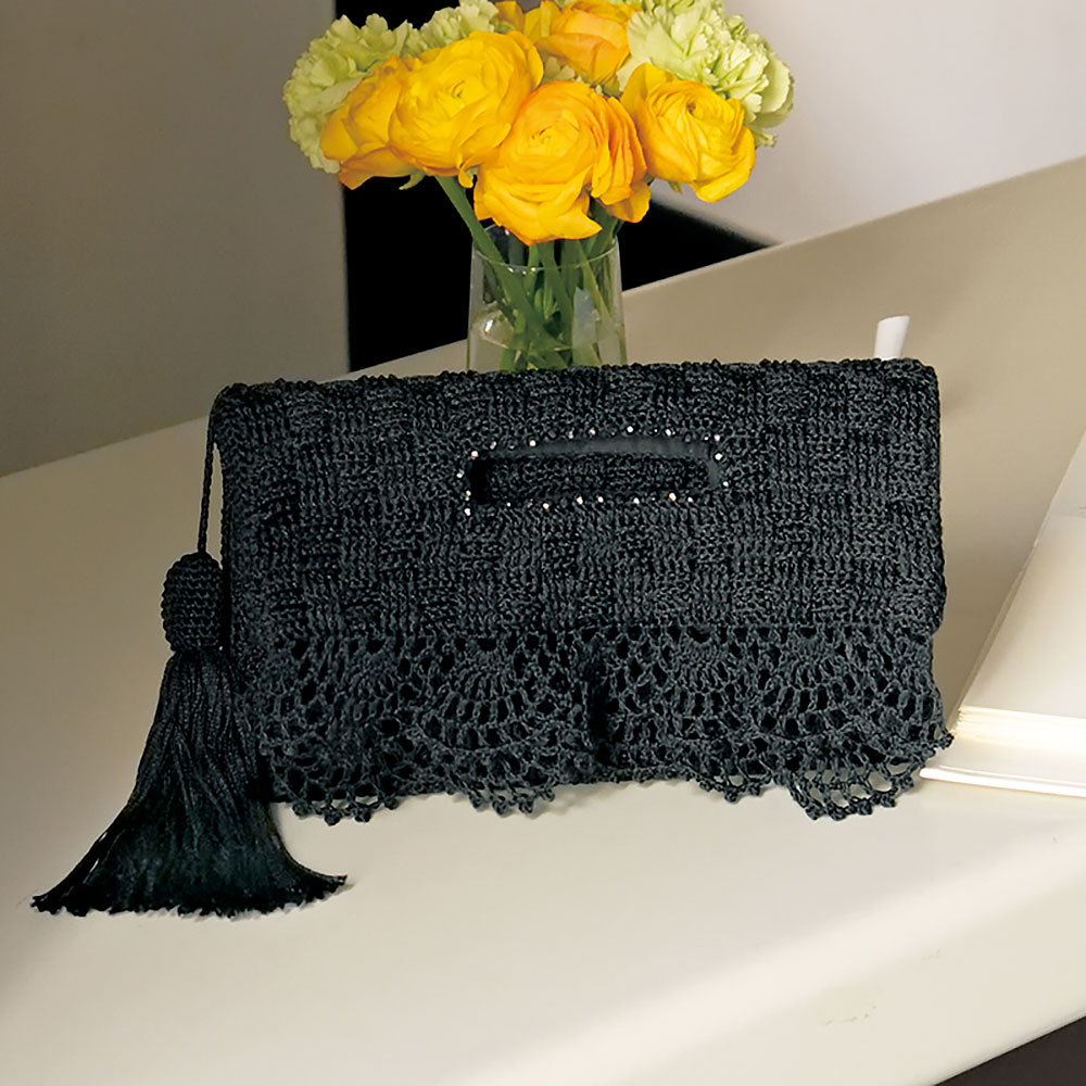 ラッフル状のレース模様をあしらったクラッチバッグ。オールブラックの正統派コーディネートを楽しみましょう。