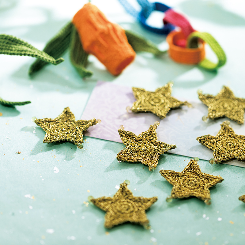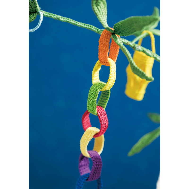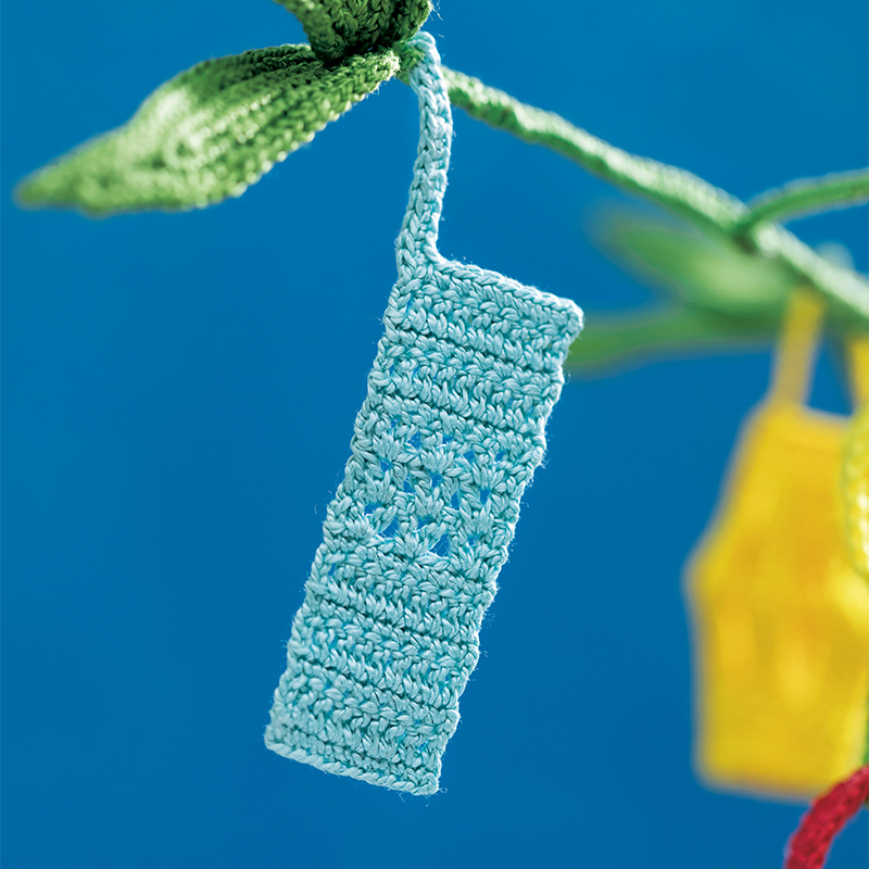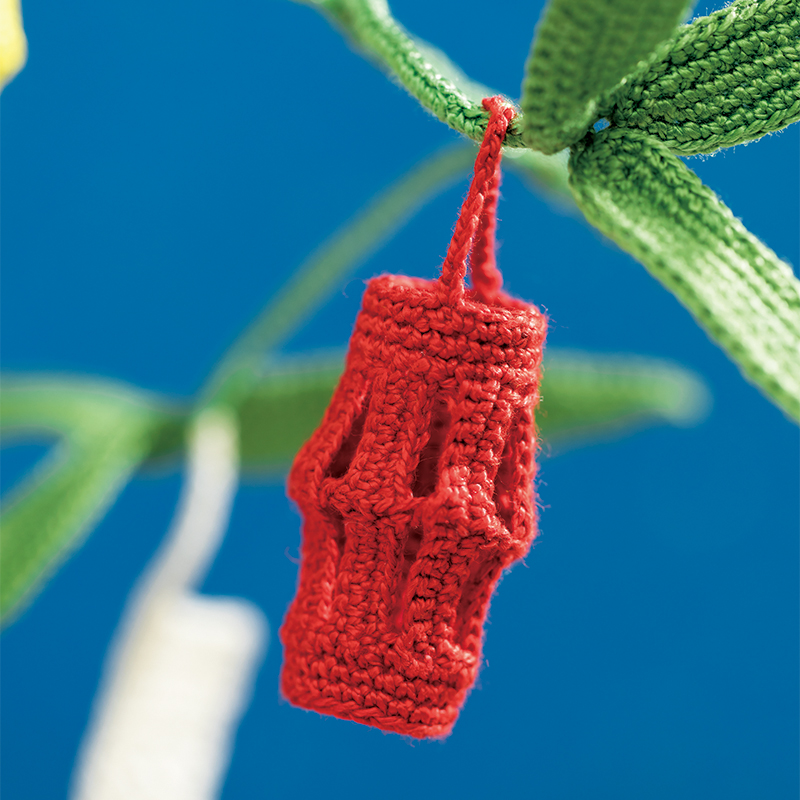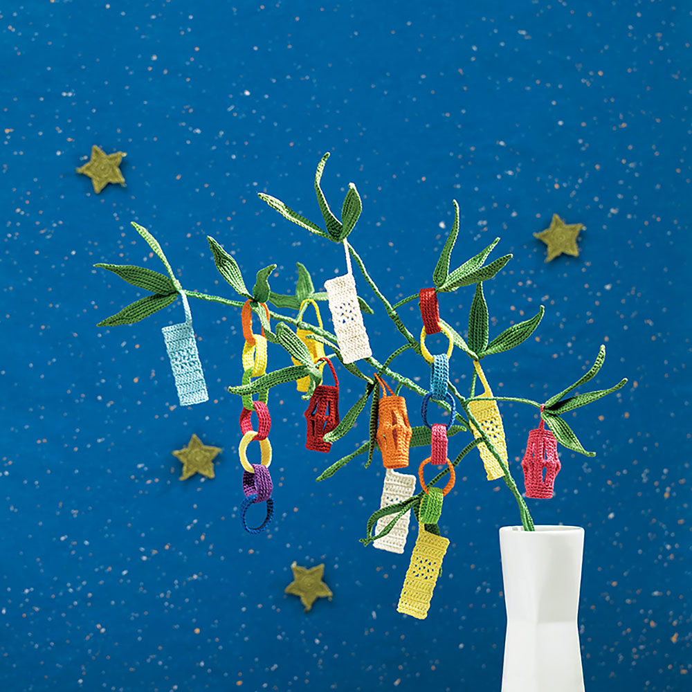 七夕飾りを支える笹竹は、まっすぐ天に向かって伸びる姿が縁起ものと言われています。近所に生えていなくても、手づくりのこれがあれば大丈夫。茎部分と笹の葉は色を替え、葉の中心にはワイヤーを入れて、張りのある形を作り上げています。短冊モチーフへの願いごとは、ピンでとめつければOK。今年は何をお願いしましょうか。