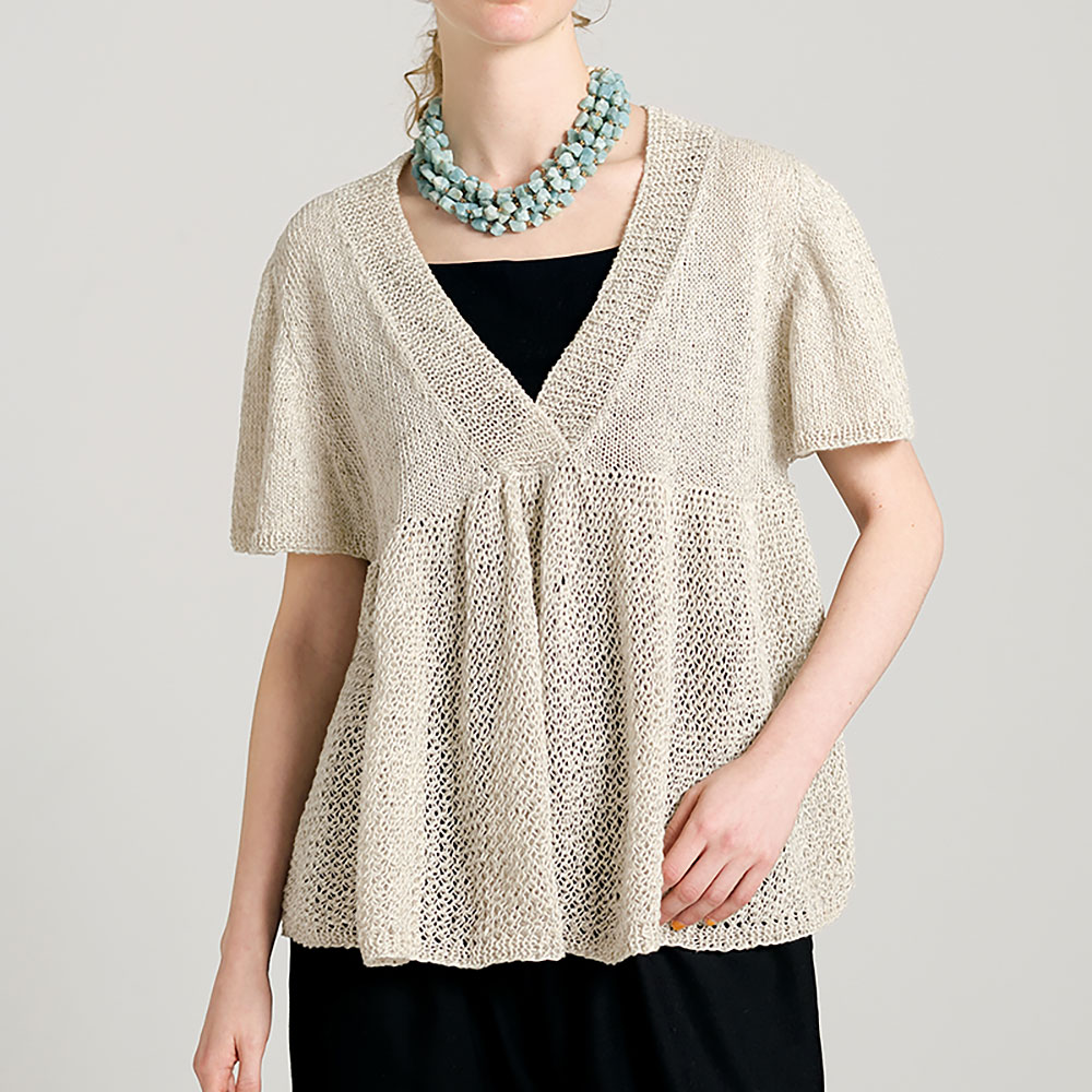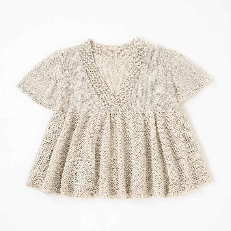 材料:ハマナカ フラックスTw サンドベージュ(701)[S サイズ]240g/10 玉。[M サイズ]265g/11玉。