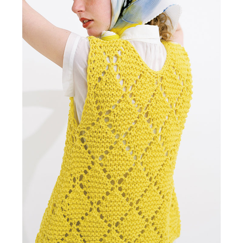 ライトな黄色で編んだキャミソールは、夏のレイヤードスタイルにぴったり。着こなしのアクセントになります。