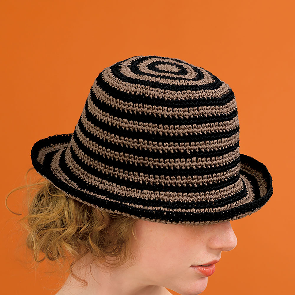 シンプルな装いにエッジを効かせてくれる、モノトーン系のボーダーハット。隣のオレンジブラウンのハットと同じ編み方なのに、全く別の帽子のよう。いろいろ試して、お好みのデザイン& 新しいおしゃれスタイルを見つけましょう!