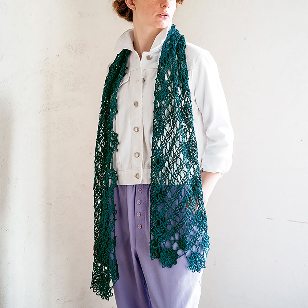 レーシーなロング丈ショールは、さらりとまとうだけで上品な雰囲気を演出できる最高の小道具! ブリューゲルレースの流れるような模様編みに、甘すぎないブリューゲルモチーフの縁取りで、大人の女性ならではの着こなしが楽しめます。透け感たっぷりのお揃いのポーチも素敵です。
