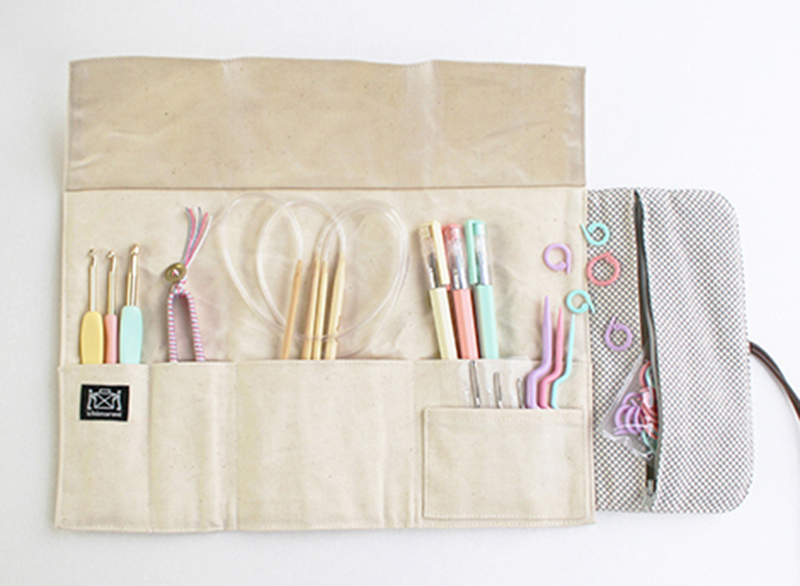 Cohana 三河木綿の巻き道具入れ[きなり・ばらいろ]