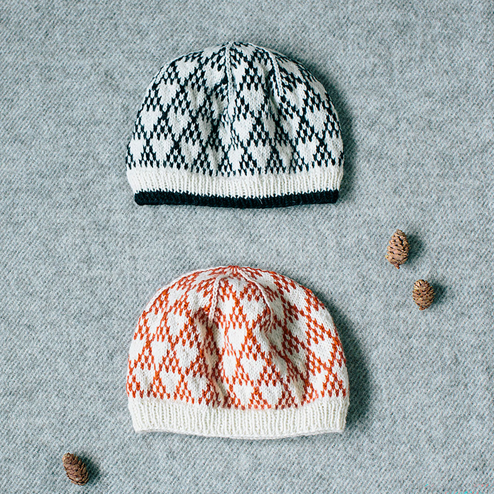 連続した三角形の模様がかわいい編み込み帽子は、色を変えるだけで雰囲気もガラッと変わります。