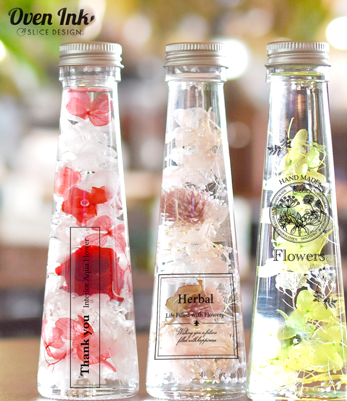 インテリア雑貨として人気のハーバルアクエリウムのオリジナルラベルや手作りキャンドルのラベルに最適です。