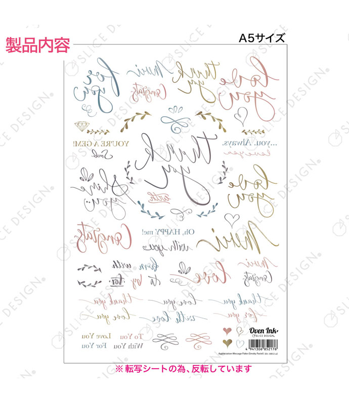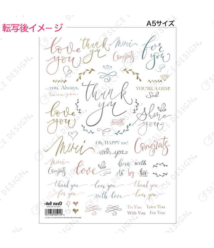 アートの主役にも差し入れにも。ギフトや小物の制作にピッタリ。お礼や感謝の気持ちが込められた文字ばかりが集まったアートシート。女性らしい雰囲気のアートの挿入にぴったりのエレガントなパステルカラーです。
