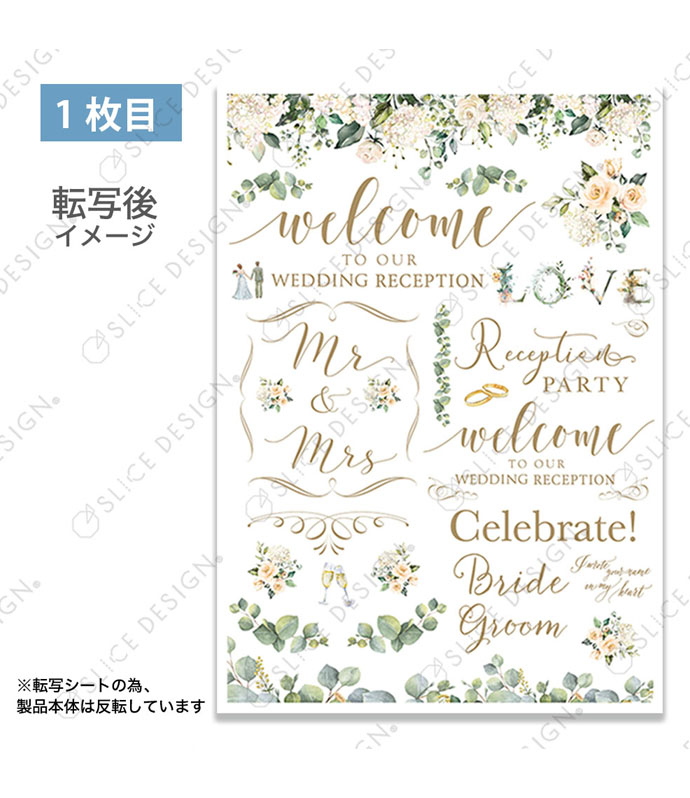 ウエディングシーンにピッタリのデザインシートが登場。ウェルカムスペース等にぴったりのボードやアイテムがオリジナルのスタイルで自在に制作できるスペシャルな2枚入りシート。プレ花嫁必見!ギフトにもピッタリです。ブライダル以外にもデザインのコラージュ次第でウエルカムスペースを彩るスペシャルアイテムが完成します。