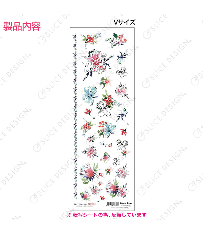 光透き通る水彩フラワーブーケ。フェミニニティ溢れるカラーリングでコーディネイトの主役になるアートデザインが楽しめます。