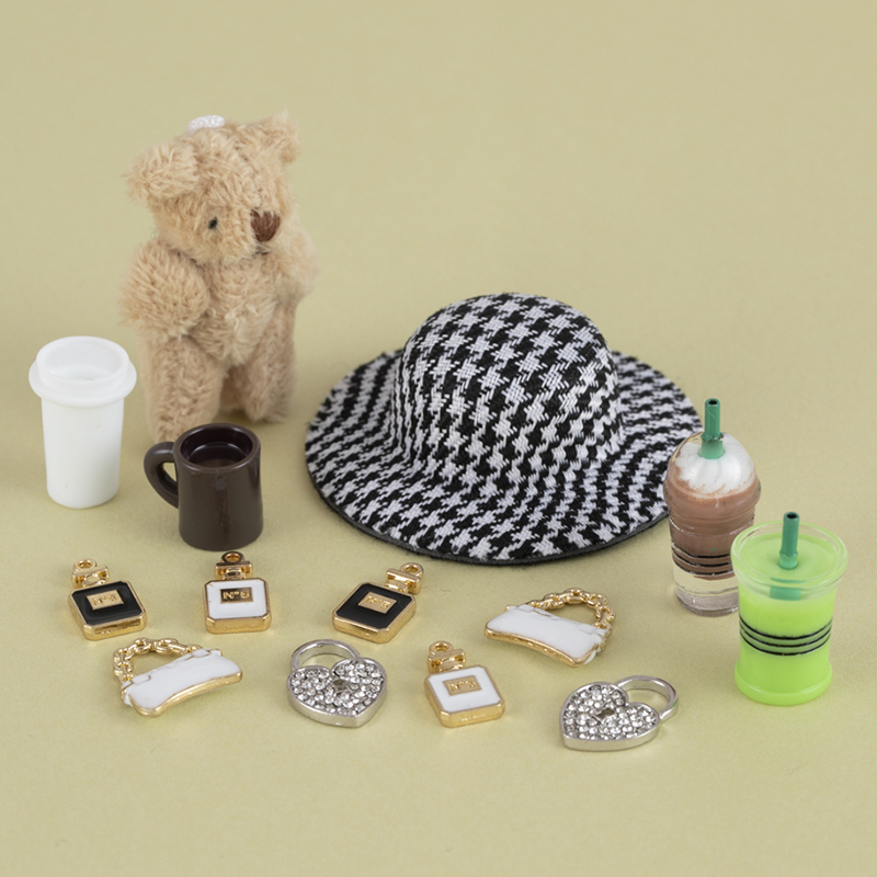 オリジナルドールにお勧めのチャームやパーツのセットです。糸針を使わず、ボンドや両面テープなどで貼っても。