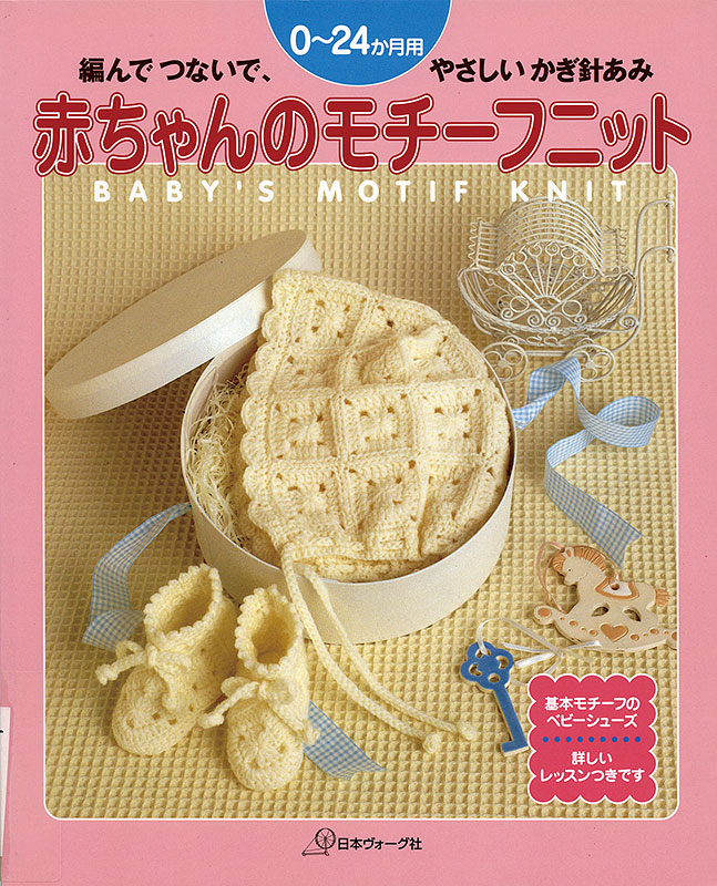 モチーフ1枚の編み方をマスターすれば編んで、つないで、いろいろな作品に。ベビーシューズ、帽子、ベスト、カーディガン、おくるみ等。0ヶ月から24ヶ月用で約30点掲載。初心者ママの基礎レッスン付き。