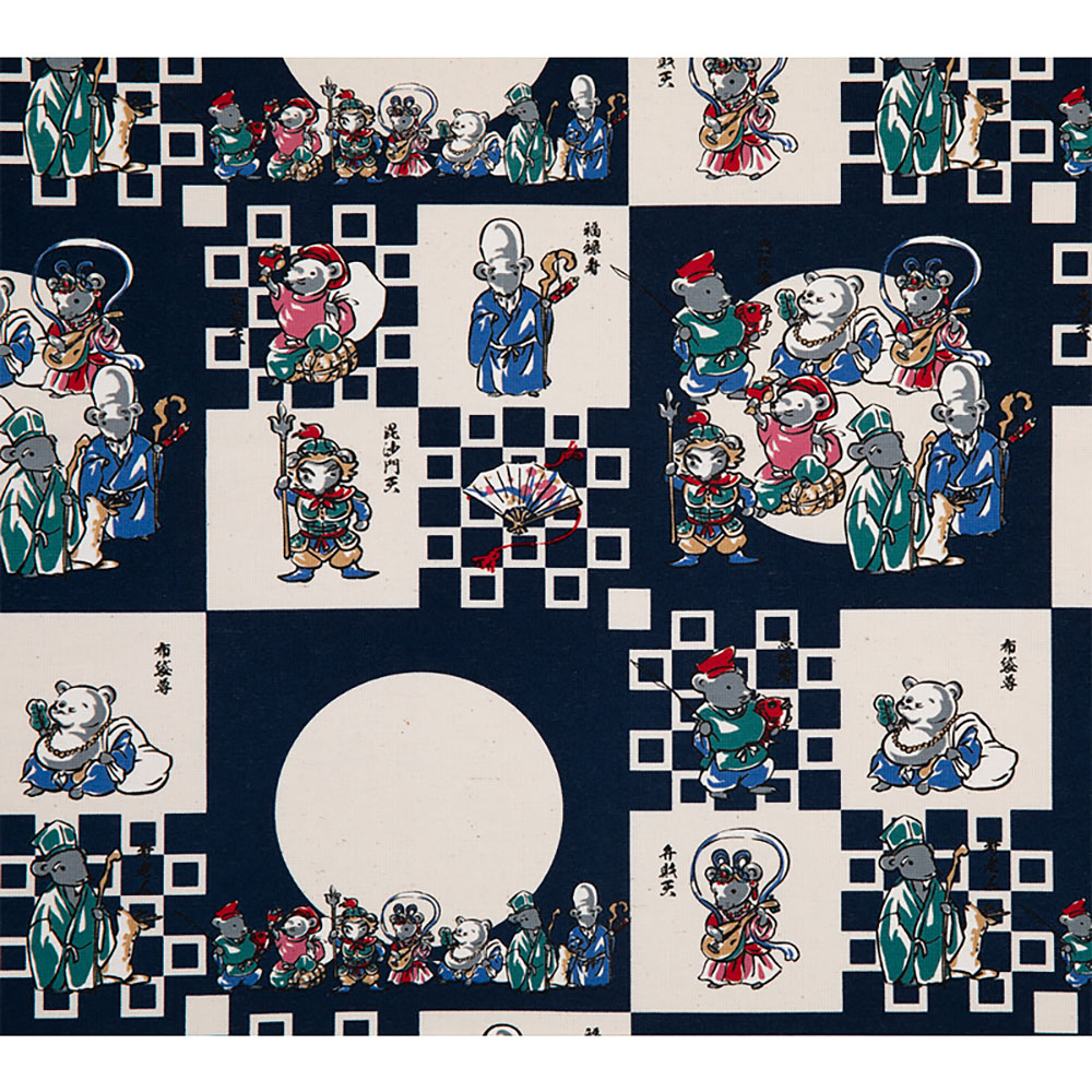 約15cm角のブロックに可愛らしいねずみの七福神をプリントしたパネル柄です。