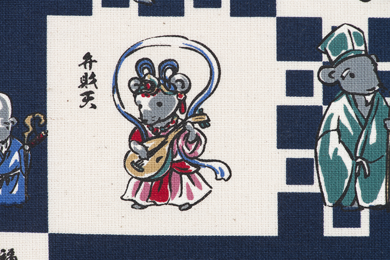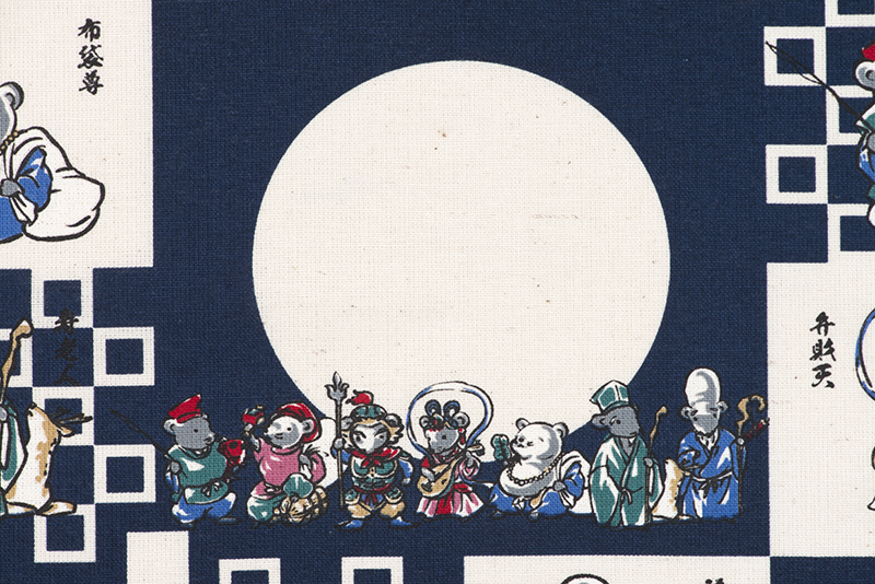 約15cm角のブロックに可愛らしいねずみの七福神をプリントしたパネル柄です。