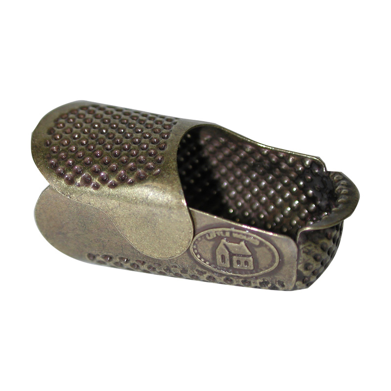 指の上部を覆う部分を広げてサイズを微調整できる、金属の一部が柔軟になったシンブルです。薄い素材なので、針の感覚もつかみやすくフィット感抜群。先がオープンで蒸れにくく、爪が長い方でもOKです。