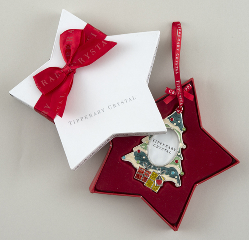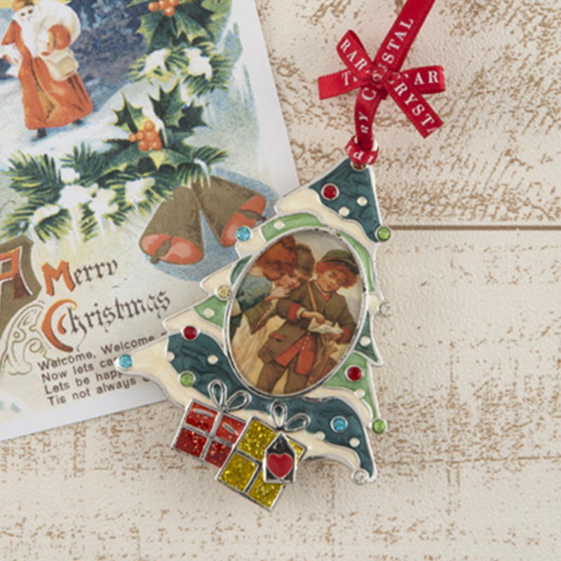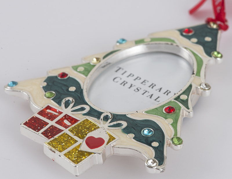 中央がフレームになったツリー形オーナメント。お好みのイラストや写真などを入れて飾れます。