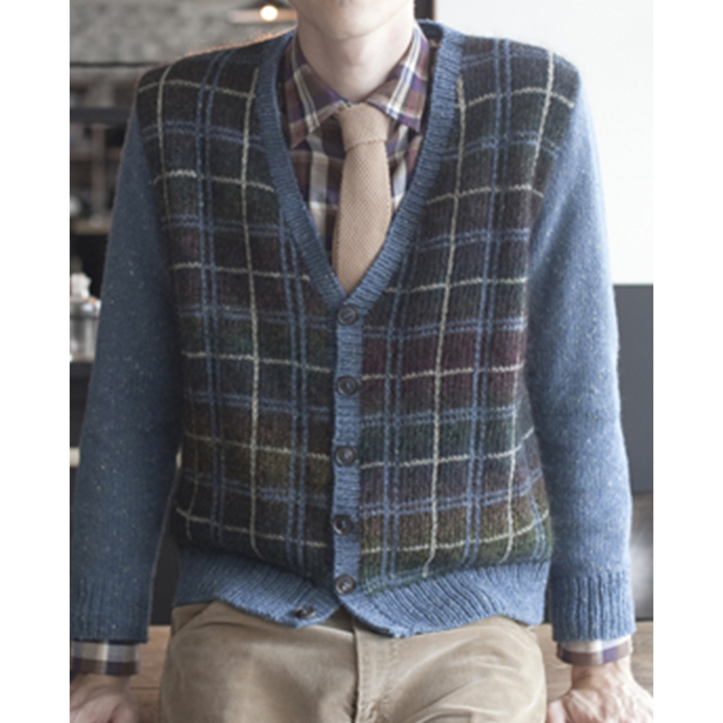 イギリスらしいファッションを考えたとき、はずせないのがタータンチェック。きちんと揃った格子柄のキルトスカートやブランケットが思い浮かびます。ニットでタータンを編むときは、縦ラインはあとからチェーンステッチをして仕上げます。