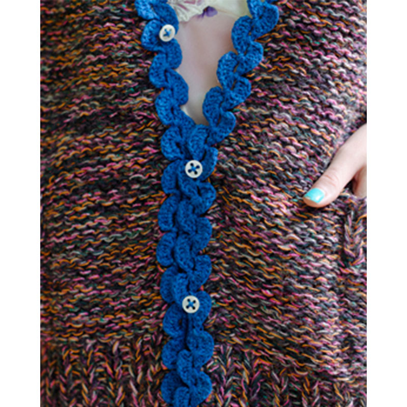 材料:長谷川商店 アンズ HAK1765 ペチュニア(20)195g/8玉。花紬 HKA3857 アプリコット(127)135g/6玉、ベイベリー(144)120g/5玉。シルクツイード HKA1777 ローレル(T-23)120g/5玉、ホットピンク(T-19)90g/4玉。シルクツイード HKA1667 ヴァイオレット(Y-22)120g/5玉。セイカ HK8403Z ボルダ―(7)50g/2玉。ヴィヴィアナ HKA3787 ブルーベル(127)35g/2玉。直径12mmのボタン4個。