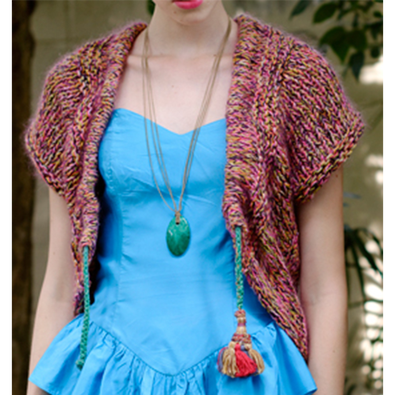 材料:長谷川商店 アンズ HKA1765 ペチュニア(20)・カラシ(Y21×651)各90g/各4玉。シルクツイード HKA1777 ストロー(T-15)・ホットピンク(T-19)各55g/各3玉。花紬 HKA3857 アプリコット(127)50g/2玉。セイカ HK8403Z ボルダ―(7)・アザレア(35)各25g/各1玉。ヴィヴィアナ HKA3787 ヒスイ(76)10g/1玉。長さ9㎝のタッセル1個。