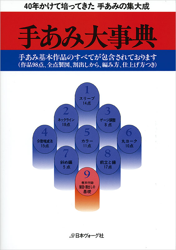 This is an encyclopedia of hand-knitting published to celebrate the 40th anniversary of Nihon Vogue Publishing. Methods of hand-knitting such as drafting / calculation and many other necessary techniques are included among its nine themes. It is a good text for professional crafters.