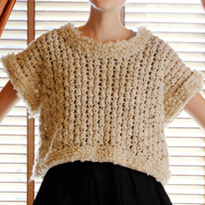 材料:オリムパス手あみ毛糸 メイクメイクココット ベージュ(413)325g/13玉。