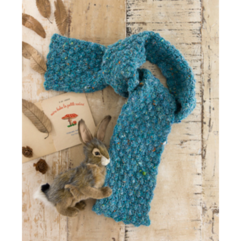 材料:ておりや オリジナルTハニーウール 濃い水色(27)140g/2カセ。