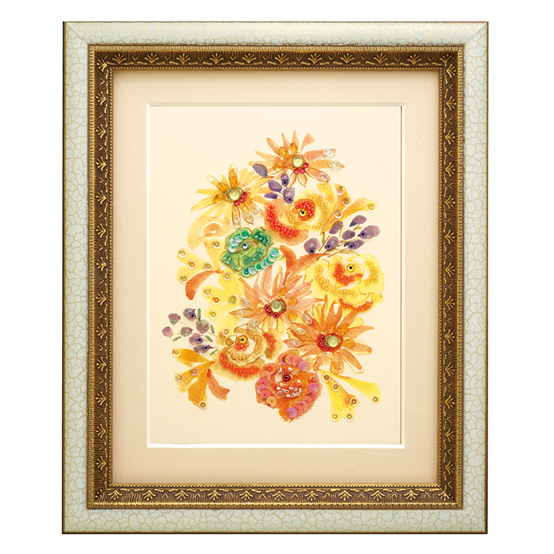 【キット作り方つき】ビーズデコールは、描かれた水彩画風のイラストの上にビーズ等を貼るビーズクラフト。華やか黄色のブーケにきらきら光るビーズやスパンコールなどを貼って色鮮やかなブーケにしましょう!ビーズデコール専用木製額(Lサイズ)に適したビーズデコール・フルサイズデザインの作品です。