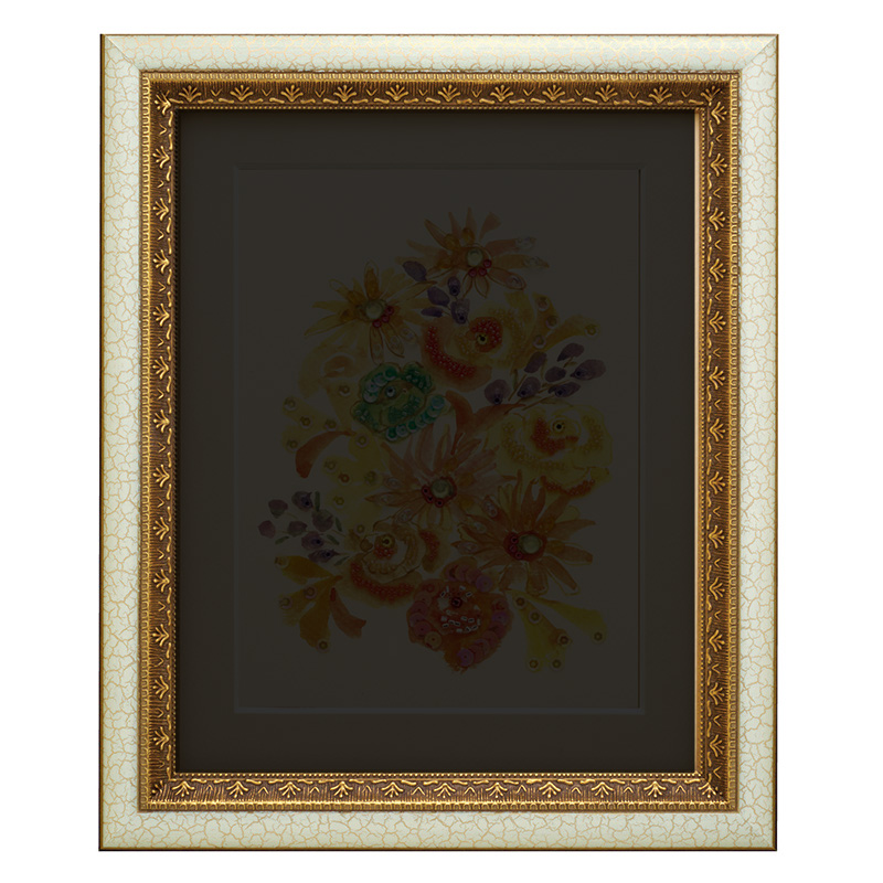 【別売り】 フルサイズデザインのビーズデコール[ブーケ ドゥ ジョーヌ(花束)]作品に適した額です。アイボリー&金色の、立体的でエレガントな細工が施された額は心を込めて作ったビーズデコールを、より一層華やかに演出しますひもで掛けるタイプ。縦でも横でも使えます。