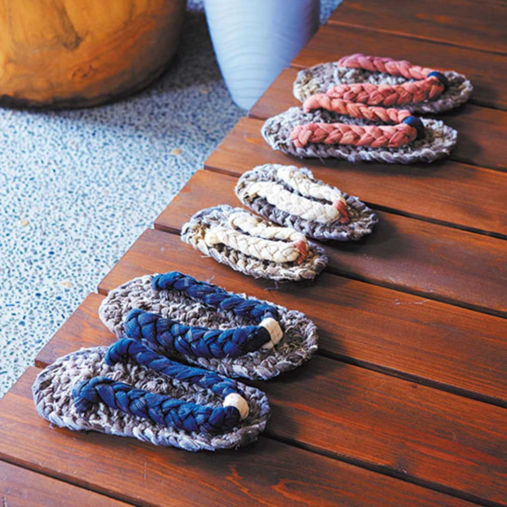 使い終わった布や子ども服などを生かせる針。テープ状に割いた生地を竹製針でざくざく編んでいくだけで、バスケットや布草履が作れます。作り方が載ったミニブックつき。