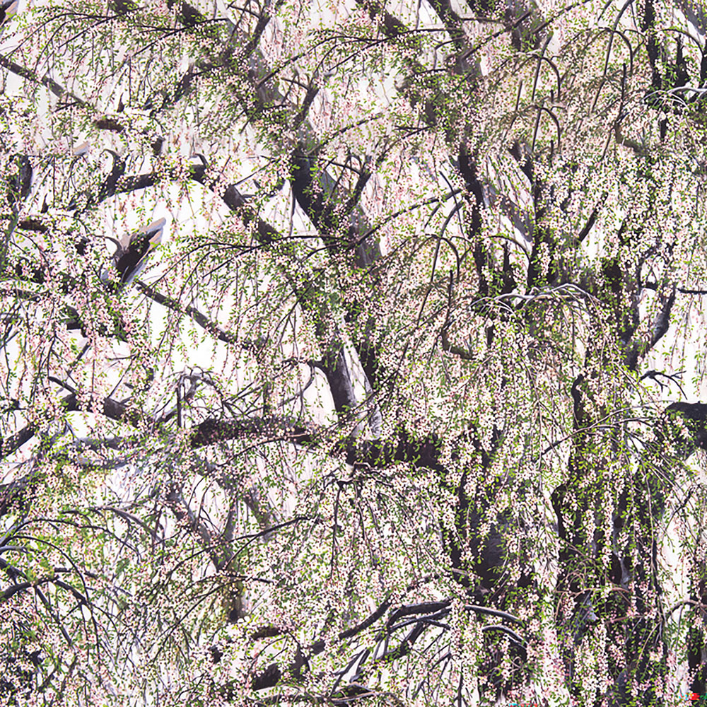[デジタルプリント]インパクトのあるしだれ桜を、インクジェットプリントで繊細に表現した大柄布です。インテリアなどにもおすすめ。