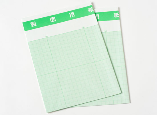 縦100×横70cmのスペースに実物大製図がひける1ミリ方眼用紙。ひいた製図からカーブの割り出しをしたり、出来上がった編地をのせて、アイロンをかける時に使います。
