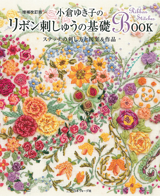 リボン刺しゅうのあらゆるステッチの刺し方を、すべて写真プロセスレッスンで詳しく解説。そのまま額装したり、ワンポイントとして使える図案も多数掲載。ブックカバーや巾着、ポーチ、ミニ額、ソーイング小物など、小物作品も充実の一冊です。2019年の増補改訂版では、新しいステッチを2種、小物作品を10点プラス。全112ページ、リボン刺しゅうの決定版です。