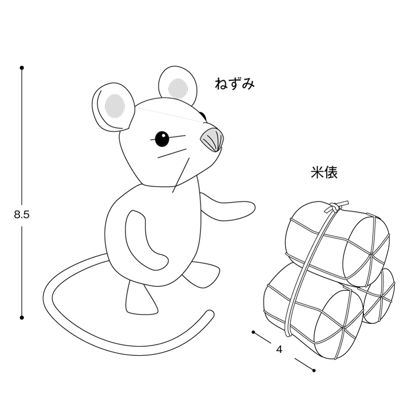 十二支のトップバッターは、ズルをした1位ともっぱらの噂ですが…。ねずみと言えば米俵。どちらも子孫繁栄のシンボルです。