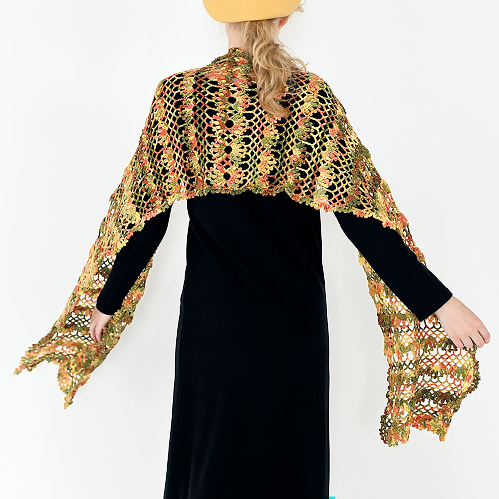 元気が出るイエロー系のビタミンカラーの大判ショール。ふわりと羽織って、残りの仕事を華麗に片付けてしまいましょう!