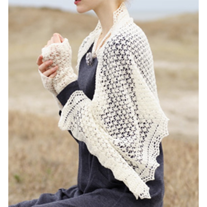 材料:ジェミーソン&スミス シェットランド2PLYレース糸 [ショール]生なり(L1A)85g=4玉[アームウォーマー]生なり(L1A)15g=1玉