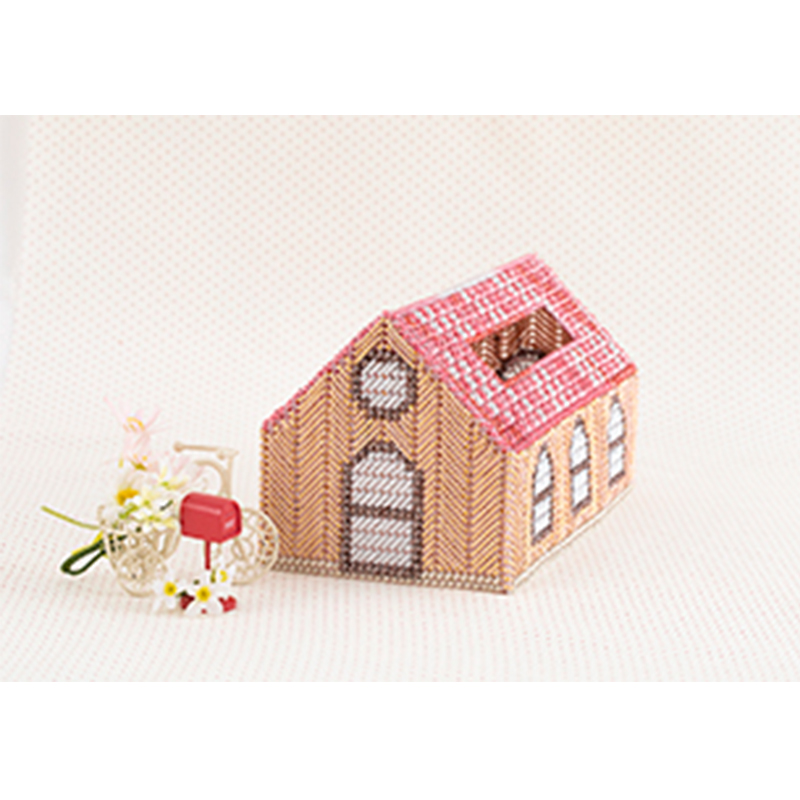 【キット作り方つき】型抜き済みのキャンバス全面にメタリックヤーンを通し、最後に組み立てて仕上げる夢いっぱいのハウス型ティッシュカバー。上からかぶせて使います。